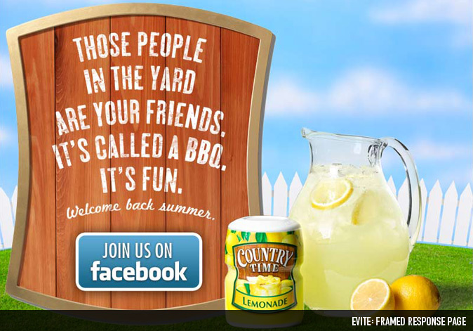Country Time Lemonade's summer initiative, "Welcome Back, Summer," was perfect for a partnership with Evite.com, whose users thrive on Summer parties.